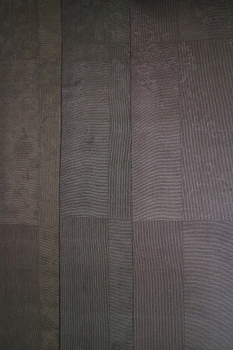 細かな縞と横段で、一尺六寸の大市松を表現したきものです。ちょうど格子の幅で着丈も袖丈もお仕立てでき、紋意匠を入れることでモダンさにも磨きがかかりました。黒茶、黒グレー、黒紫系で5色ご用意しておりますが、同じ黒でもお似合いになる黒は異なりますので、お顔に合わせてみてお選びください。帯のコーディネートは無限大。かっこよく、おしゃれに着こなしていただきたいきものです。